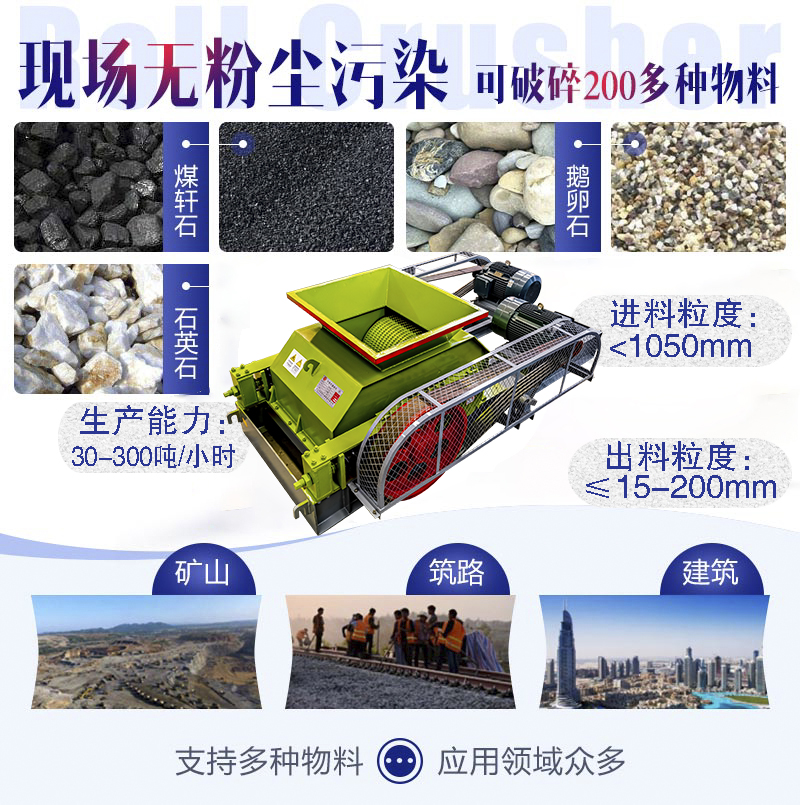雙齒輥破碎機適用于煤炭、煤矸石、焦炭、石油焦、活性炭、褐煤、鎳礦、氧化鈣 、焦炭、 鉻礦石、方解石、玻璃、陶瓷、輝綠巖、鋯英石、鎳礦石、石英石、大理石、河卵石、鵝卵石、煤矸石等物料。