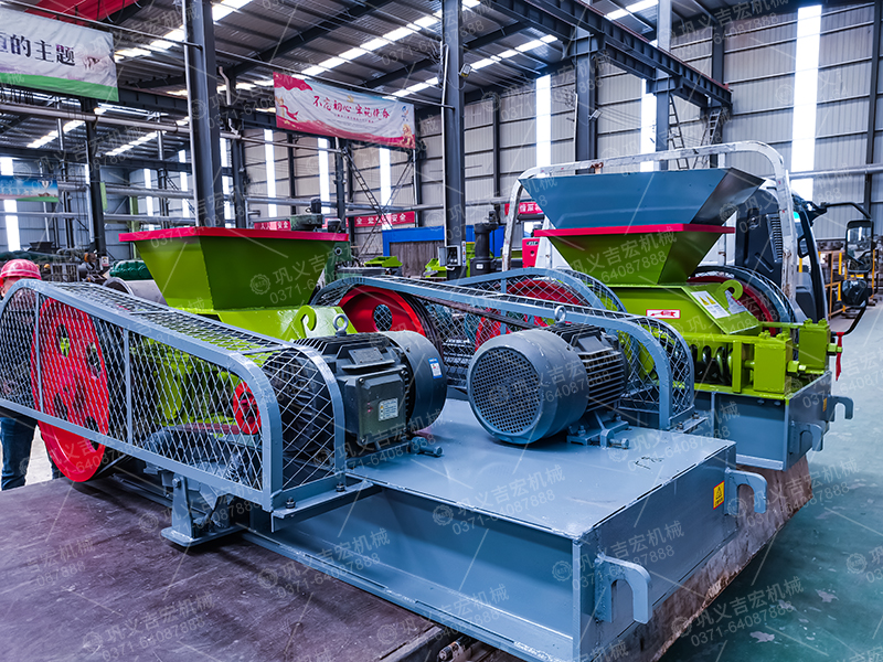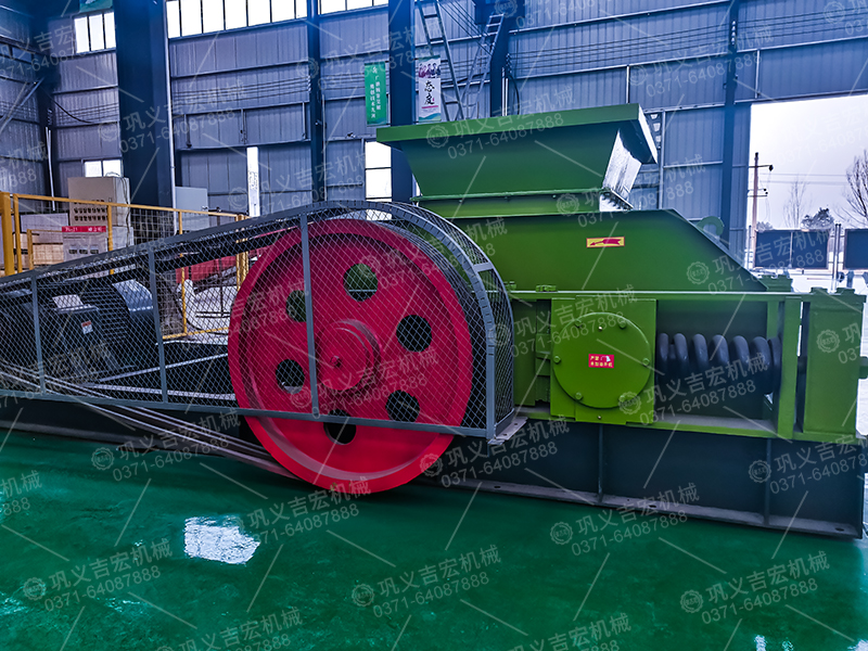 當物料進入機器的破碎腔以后,物料受到轉動輥軸的嚙力作用,使物料被逼通過兩輥之間,同時受到輥軸的擠軋和剪磨,物料即開始碎裂,碎裂后的小顆粒沿著輥子旋轉的切線,通過兩輥軸的間隙,向機器下方拋出,超過間隙的大顆粒物料,繼續被破碎成小顆粒排出。