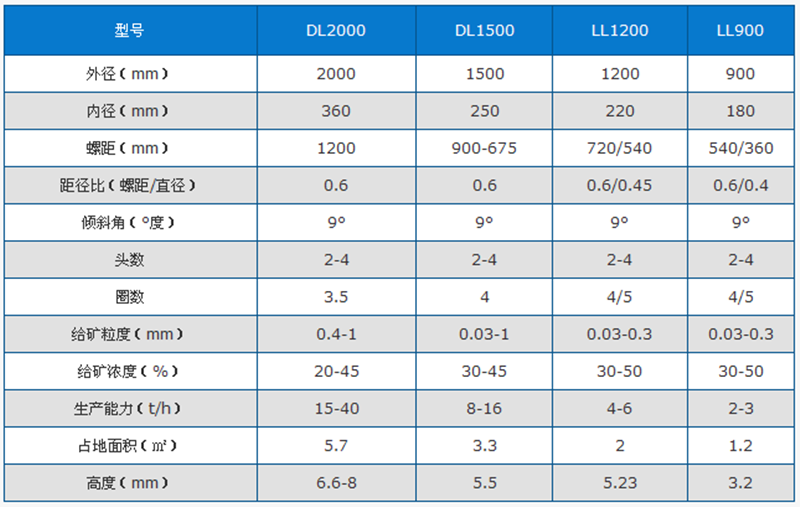 螺旋溜槽適用于分選粒度0.3--0.02毫米細料的鐵礦、鈦鐵礦、鉻鐵礦、硫鐵礦、鋯英石、金紅石、獨居石、磷乙礦、...